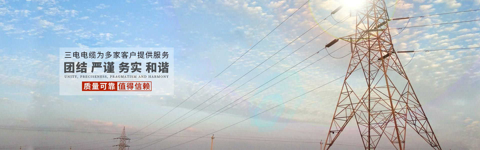 四川三電電纜有限公司是一家集電線電纜設計、生產、銷售、服務為一體的綜合性現代化企業。 鄭重聲明:公司所售電線電纜,均廠價銷售,如有發現高價銷售,公司包退包換! 公司位于天府之國工業集中區金府五金機電城,公司現有辦公面積百余平米,倉儲面積兩千平米。擁有十余位充滿思想、創新、熱衷于電線電纜事業的行業精英,以滿腔熱情投身于電力應用領域,為電線電統行業建設奉獻了十余載青春! 主營產品:強弱電;控制電纜;橡套電纜;電線電纜;絕緣軟線;鋁合金電纜;弱電控制線纜;絕緣防火電纜;柔性礦物絕緣;預制分支電纜……